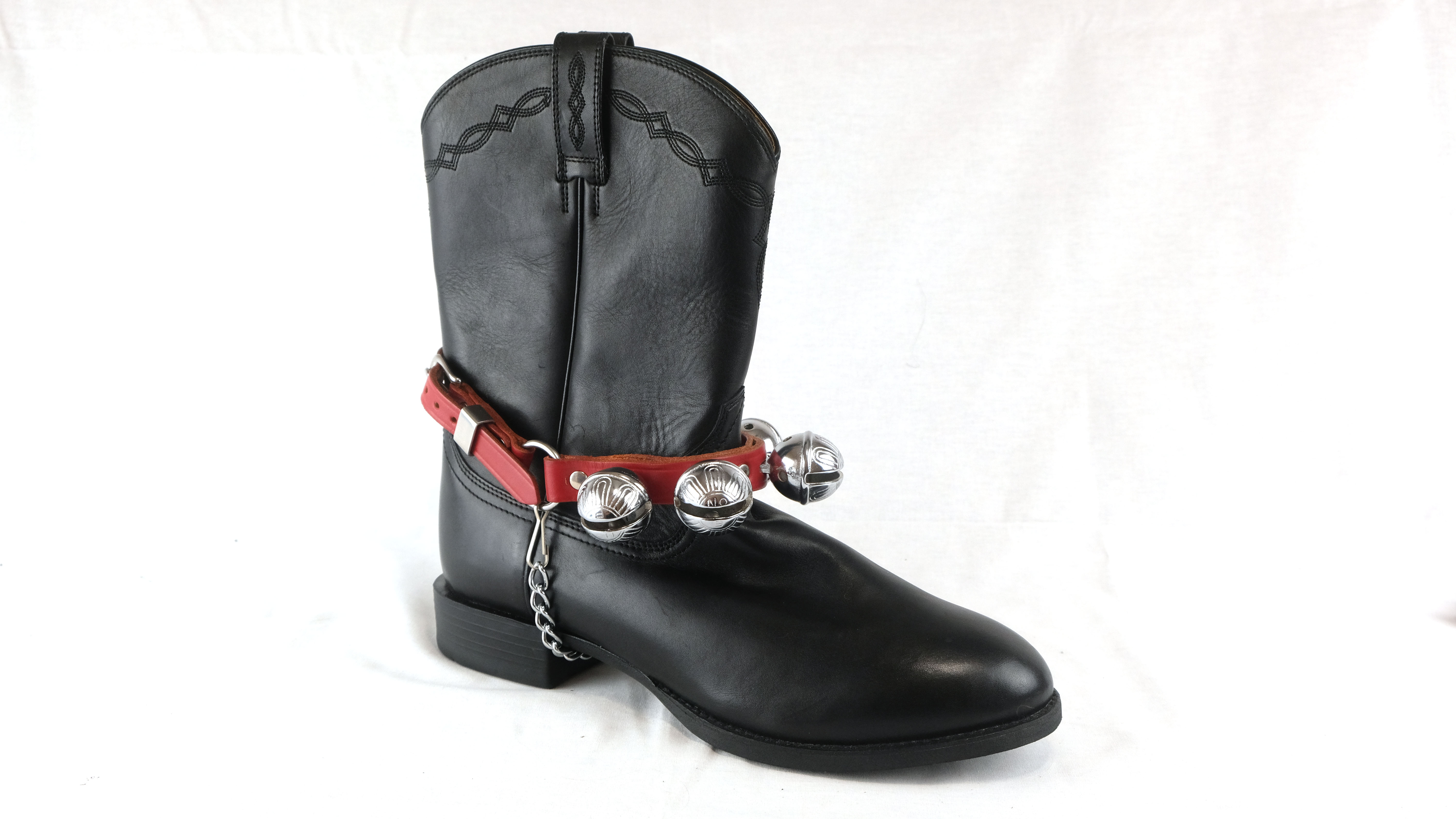 Smooth Nickel Plated Leather Boot Bells In Red, Brown And Black Made By Amish Craftsmen. Pair Of 2