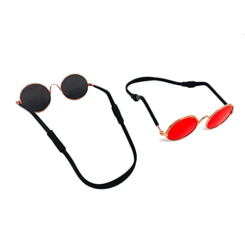 2Pcs Small Breed Dog Sunglasses,Stylish Anti-UV Dog Goggles with Soft Frames for Cats and Puppies for Outdoor Activities, Riding, and Driving with Secure Elastic Straps