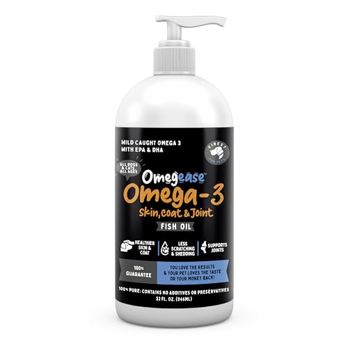 100% Pure Omega 3 Fish Oil for Dogs & Cats. Better Than Salmon Oil for Skin & Coat, Joint Function, Immune, Brain & Heart Health. Natural EPA DHA Fatty Acids. Pet Food Supplement (Fish Oil, 32oz)