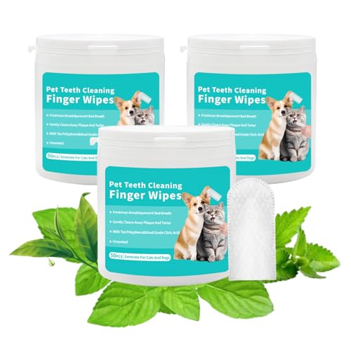 3Pack Pet Teeth Cleaning Wipes for Dogs & Cats 150 Counts Reducing Plaque & Tartar, Breath Freshener Dental and Gum Care Finger Pet Wipes