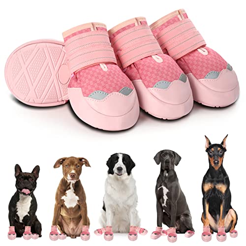 4Pcs Dog Boots, Dog Protectors, Waterproof Pet Booties Reflective Breathable Wearproof High Top Pet Shoes for Indoor Outdoor Activities (L)