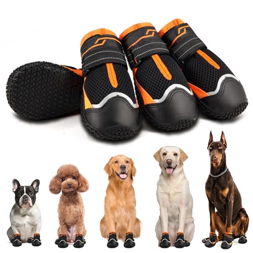 4PCS Dog Shoes Dog Paw Protector Dog Boots,Anti-Slip Dog Boots with Soft Rubber Sole Reflective Strips Big Dog Paws Booties for Outdoor Hiking Hot Pavement,XXL(3”x2.5”)(L*W)