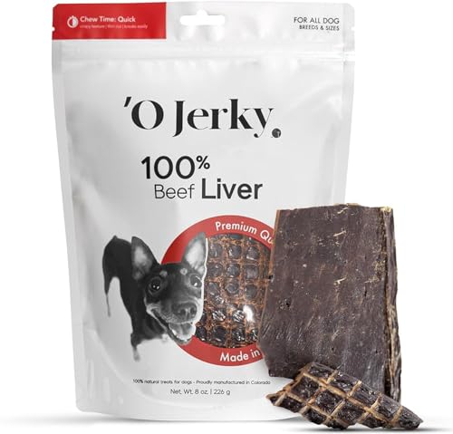 ‘O Jerky 100% Beef Liver Dog treats – Single Ingredient Human Grade Dehydrated Dog Food – Natural Grain-Free and Rawhide-Free Jerky Treats for Dogs, Large Breed & Puppy Essentials – Made in USA (8 Oz)