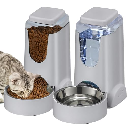 2 Pack Automatic Cat Feeder and Water Dispenser Dog Gravity Food Feeder and Waterer Self Feeding Bowls for Small Medium Pets Puppy Kitten (Grey)