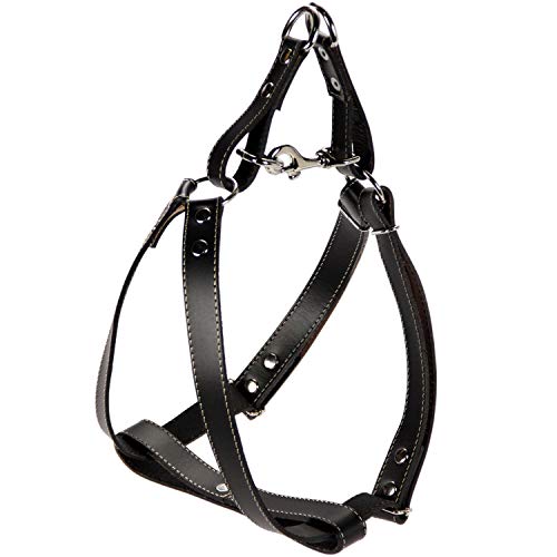 Adjustable Dog Harness – Heavy Duty Quick Release Genuine Leather Harness – Black