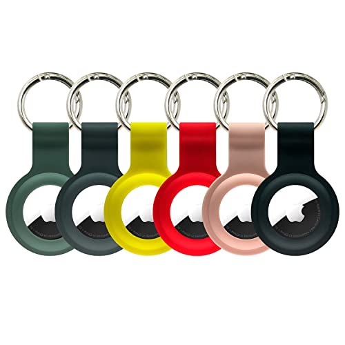 [6 Pack] Air Tag Holder, Protective Cases for Apple AirTag, Pomogo Soft Silicone Airtag Holder with Anti-Lost Keychain, Finder Items for Keys/Wallets/Kids/Dogs/Backpacks