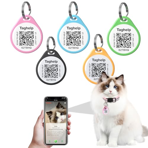 (5 pack)QR Code Pet ID Dog cat Tags for Collar Personalized for Pet Online Profile – Scan QR Receive Instant Pet Location Alert Email, Anti-lost,No subscription fees (5 Colours, for cat – 1″)