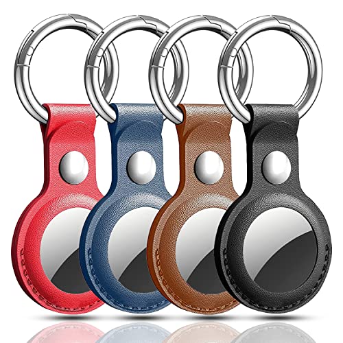 [5 Pack] Apple Airtag Holder for Air Tag Keychain, Protective Vegan Leather Airtags Case, Tile Tracker Cover Air Tag Holder, Car Key Ring Compatible with New AirTag Dog Pet Collar, Outdoor Key Wallet