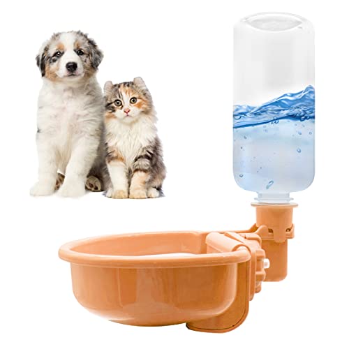 16oz Pet Water Bottle, Gravity Dog Water Bowl Dispenser for Cage, Anti-Overflow Water Dispenser for Small Dogs, Cats, Rabbits and Other Small Animals, BPA Free, Orange