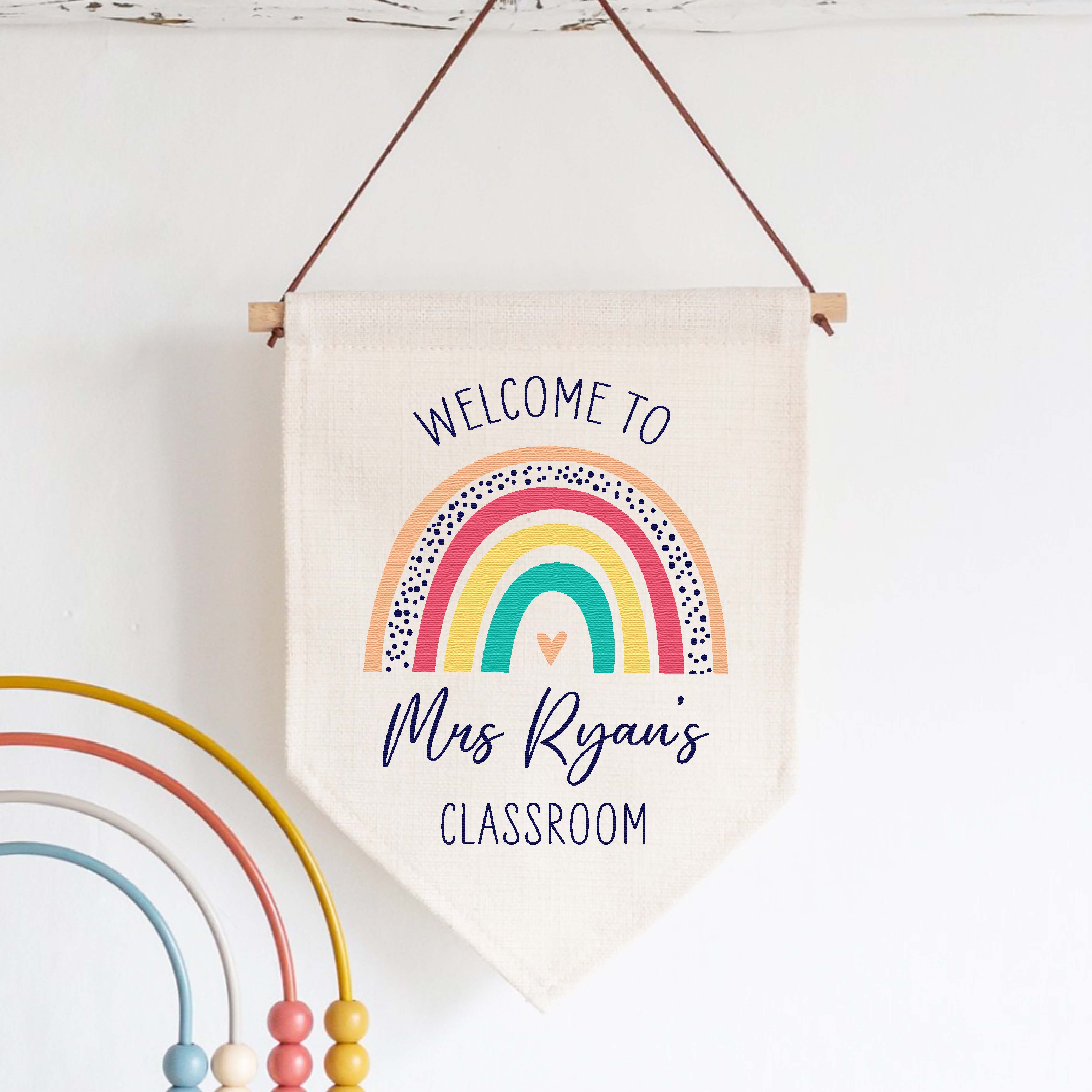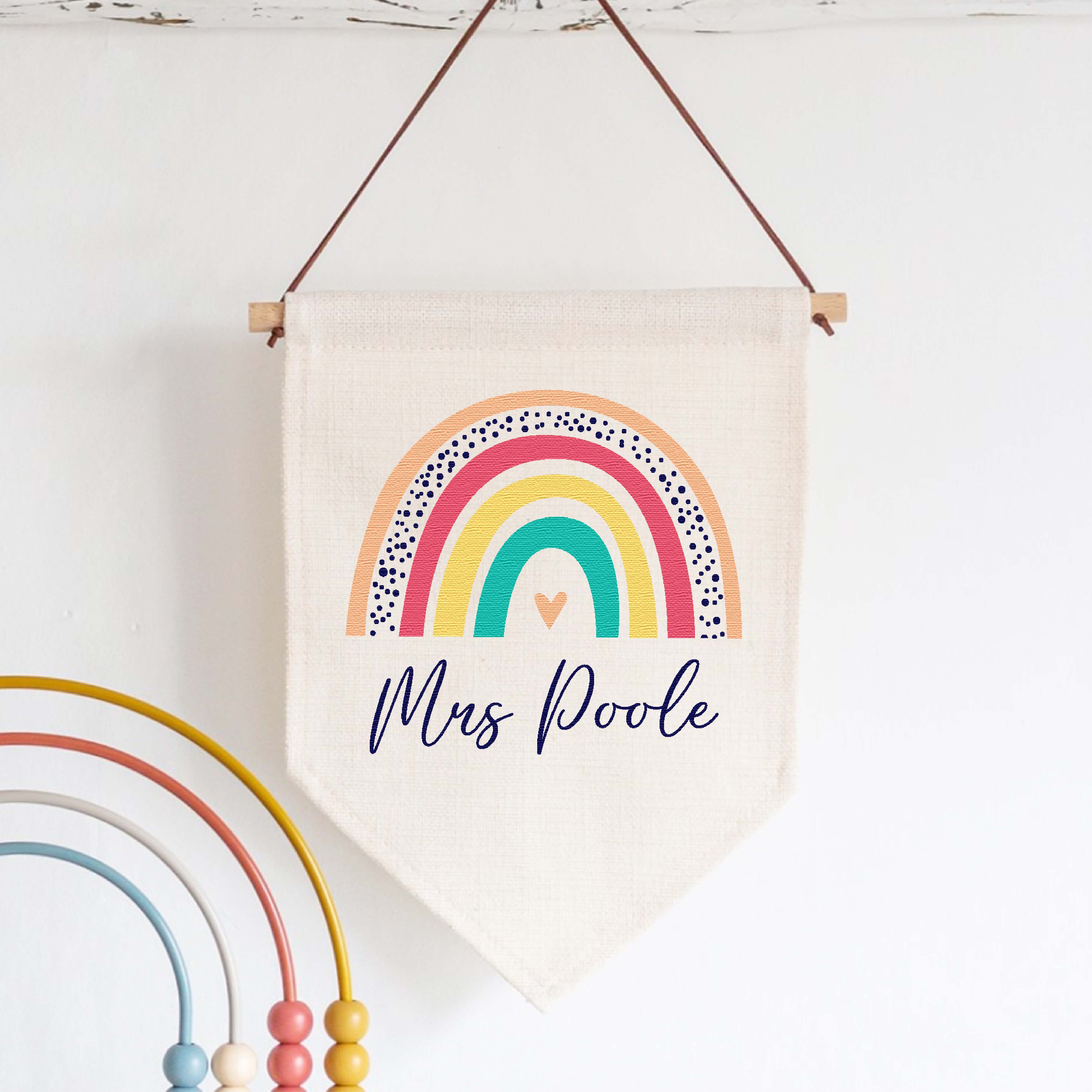 Personalised Teacher Rainbow Classroom Linen Flag – Teacher Appreciation Gift