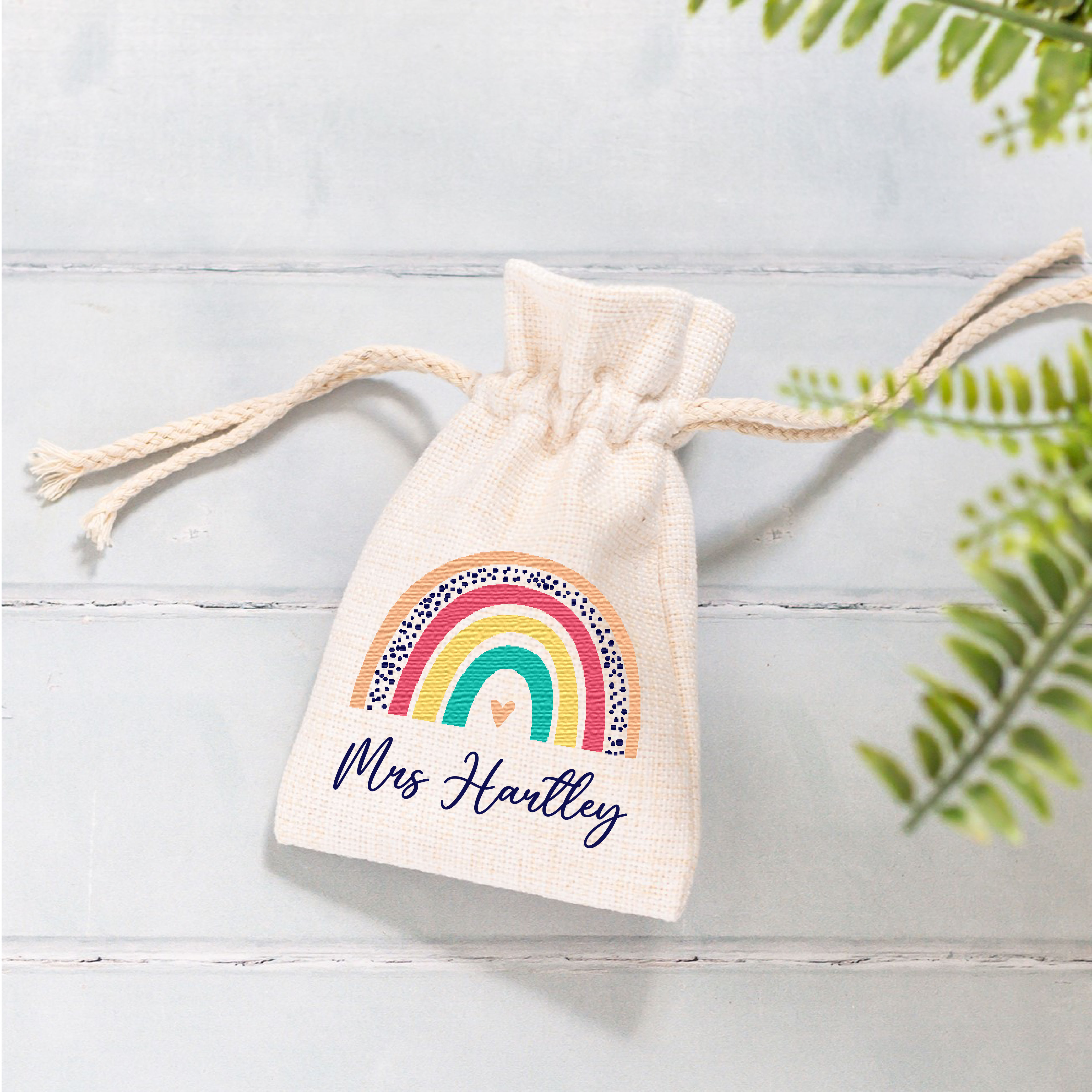 Personalised Teacher Linen Drawstring Pouch – Teacher Appreciation Gift