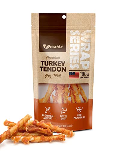 Afreschi Turkey Tendon for Canines, Canine Treats for Wrapped Sequence, All Pure Human Grade Canine Deal with, Ingredient Sourced from USA, Hypoallergenic, Rawhide Various, Wrapped Rice Stick