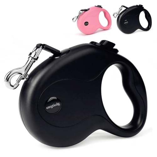 16Ft Retractable Dog Leash,Light Weight Leash for Small to Medium Dogs/Cats Up to 50lbs,Stainless Steel Spring Strong Nylon Tape, Tangle Free, One-Handed Brake (black)