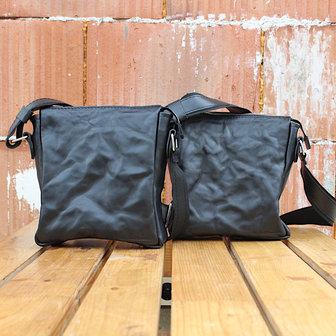 Handmade Full-Grain Leather Crushed Effect Shoulder Bag Set